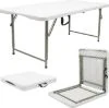 - Product Details: The portable folding camping table is very easy to transport thanks to its lightweight frame, as well as being strong and sturdy. The cross braces and foldable metal legs are stable and sturdy, with powder coated frame for added protection (120L x 60W x 75H)cm White