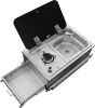 15 Inch Stainless Steel Sink Single Bowl Stainless Steel with Glass Lid, Faucets and Drawers, Stove for Caravan, Boat, Camping