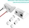 - PACKAGE INCLUDES – 4 x ABS corner mounting brackets, 2 x side mounting brackets, 1 x solar cable entry gland, 2 x cable mounting heads, 2 x pre-installed rubber plugs, 2 x spare rubber plugs, 12 x self-tapping screws. You can contact customer service at any time if you have any questions, we provide after-sales service to satisfy you.