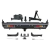 The bumper is made of durable steel and is black coated to resist rust and corrosion.