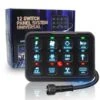 - LARGER & WATERPROOF PANEL: Larger 12-gang switchboard for higher stability and higher current capacity. With rated power 960W/12V, 1920W/24V, maximum current 80A, operating temperature range – 40°C to 85°C. With IP65 waterproof rating to resist water and dust, aluminum alloy housing, and sturdy iron bracket for long life. Comes with 5 circuits to protect automobile circuits.