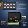 - SAFETY-MINDED DESIGN: The switch box comes with an 80 amp circuit breaker, blade fuses, and high power solid state relays. The panel provides you with overheat protection, overload protection, voltage surge protection, and surge protection. Solid-state relays are integrated into the circuit control box, rather than being exposed as usual. Small in size, waterproof and space saving.